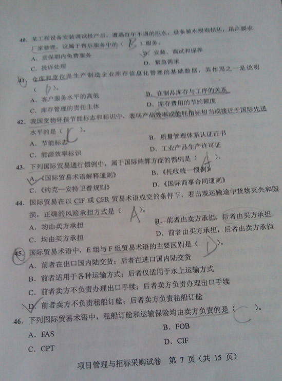 - 2015年招標師考試《法律法規》真題答案匯總2015-11-09
