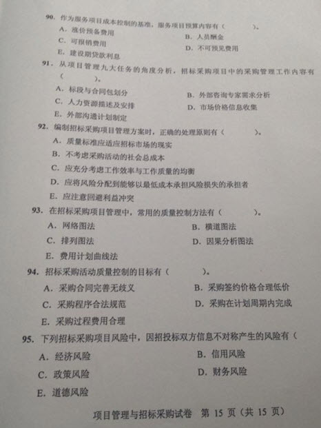 - 2015招標師考試《法律法規》真題答案(網友版2)2015-11-09
