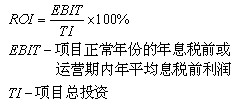 指項目達到設計能力后正常年份的年息稅前或運營期內年平均息稅前利潤(EBIT)與項目總投資(TI)的比率