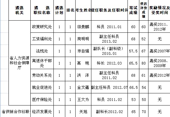 2013年遼寧省直機關公務員擬選調名單公示(二)