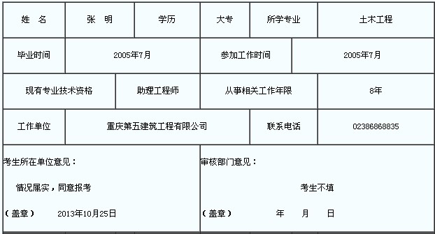 說明:1、“考生所在單位意見”由考生所在單位簽注考生所填內容是否屬實的意見并蓋章。