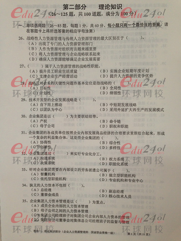 摘要 2013年11月人力資源管理師一級理論知識真題,由環球網校人力資源管理師頻道為您提供!