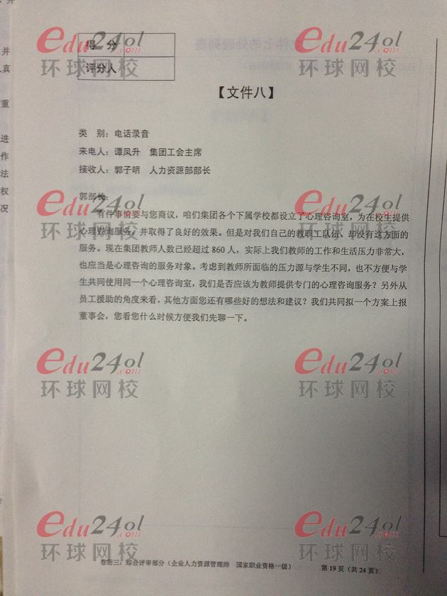 2013年11月人力資源管理師一級(jí)綜合評(píng)審真題