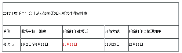 2013年下半年吳忠會(huì)計(jì)從業(yè)資格考試準(zhǔn)考證打印時(shí)間11月18日起