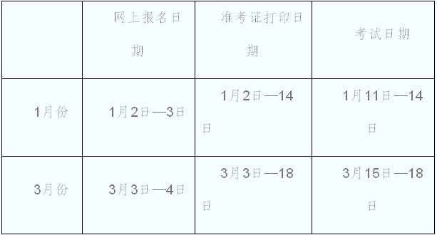 2014年第一季度網(wǎng)上報名日期、準(zhǔn)考證打印日期及考試日期安排表