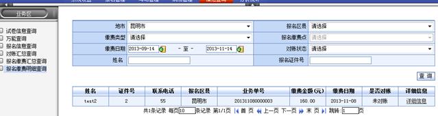 菜單:【信息查詢】》【報名繳費明細查詢】
