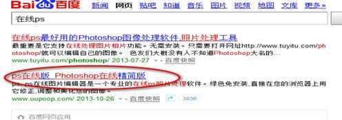 2、輸入“在線ps”字樣,點擊 搜索;如下圖:
