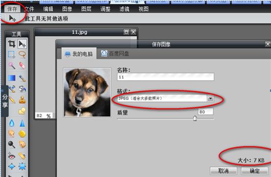 5、點擊“保存” 選擇格式為jpeg,確定大小不要超過20k:
