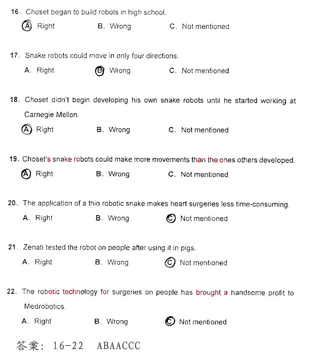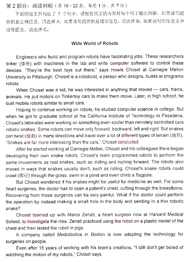 - 職稱英語綜合C閱讀判斷真題及答案2017-07-03