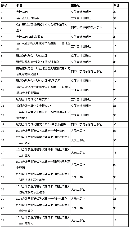摘要 2014年第一次海南會計從業資格考試教材參考書目表。