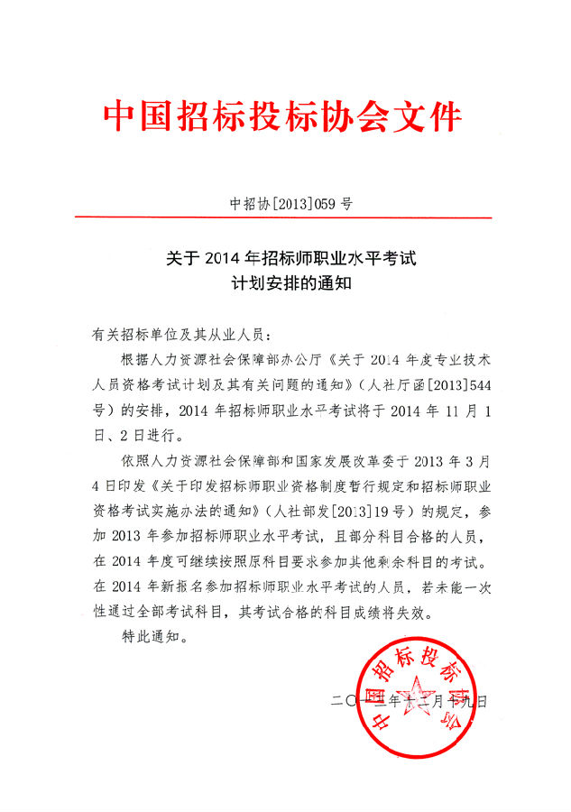- 2014年招標(biāo)師職業(yè)水平考試計(jì)劃安排通知2013-12-25