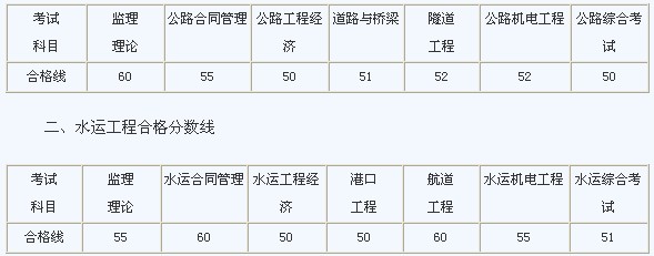 根據交通運輸部質監局網發布的《2013年公路水運工程監理工程師過渡考試成績查詢》得知,2013年公路監理師合格標準如下: