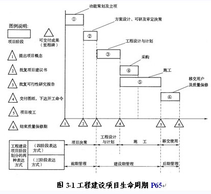 與國(guó)際項(xiàng)目管理界就項(xiàng)目生命周期給出的定義相比,三階段表達(dá)法中的“前期管理”階段涵蓋了前者的“開始”與“計(jì)劃”兩個(gè)階段,“建設(shè)(造)期管理”正好等同于前者的“執(zhí)行、控制(細(xì)節(jié)設(shè)計(jì)與生產(chǎn))”階段,而