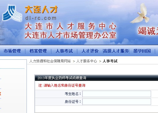 2013年度大連執(zhí)業(yè)藥師資格考試成績現(xiàn)已公布,請考生登錄大連人事考試網(wǎng)“成績查詢”欄目,選擇相應考試名稱并輸入身份證號進行查詢。
