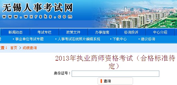 2013年度無(wú)錫執(zhí)業(yè)藥師資格考試成績(jī)現(xiàn)已公布,請(qǐng)考生登錄無(wú)錫人事考試網(wǎng)“成績(jī)查詢”欄目,選擇相應(yīng)考試名稱并輸入身份證號(hào)進(jìn)行查詢。