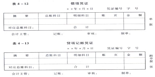 (2)單式憑證。也稱單項記賬憑證。單式憑證是指每一張記賬憑證只填列經(jīng)濟業(yè)務(wù)事項所涉及的一個會計科目及其金額的記賬憑證。填列借方科目的稱為借項憑證,填列貸方科目的為貸項憑證。