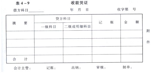 (1)收款憑證。收款憑證是指用于記錄現(xiàn)金和銀行存款收款業(yè)務(wù)的會(huì)計(jì)憑證。