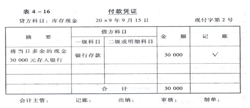 付款憑證是用于現(xiàn)金及銀行存款付出業(yè)務(wù)的記賬憑證。一般格式如教材表4-10所示。