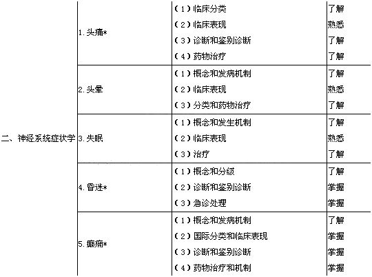 2013年神經內科學主治醫師專業知識考試大綱(專業代碼308)