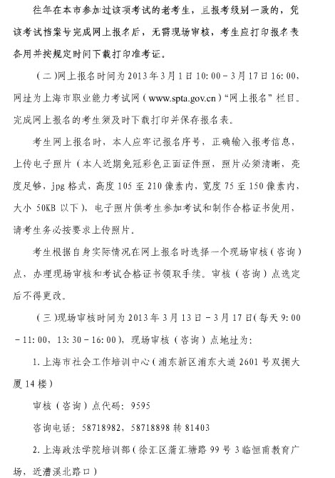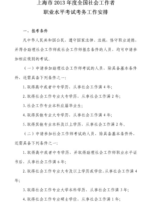 上海2013年社會工作者考試報名3月1日至17日