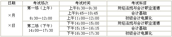 會計從業無紙化考試,每天安排兩場,具體考試時間安排如下: