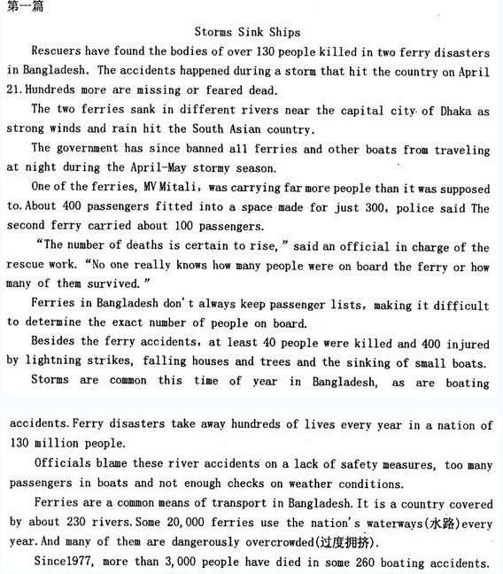 下面有3篇短文,每篇短文后有5道題,每道題后面有4個選項。請根據文章的內容,從每題所給的4個選項中選擇1個最佳答案。