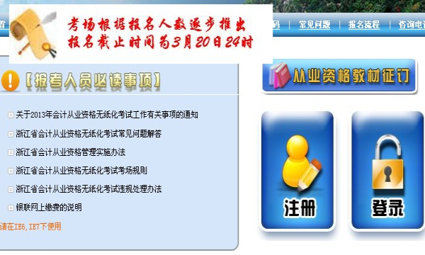 浙江2013年會計從業(yè)資格無紙化考試報名入口