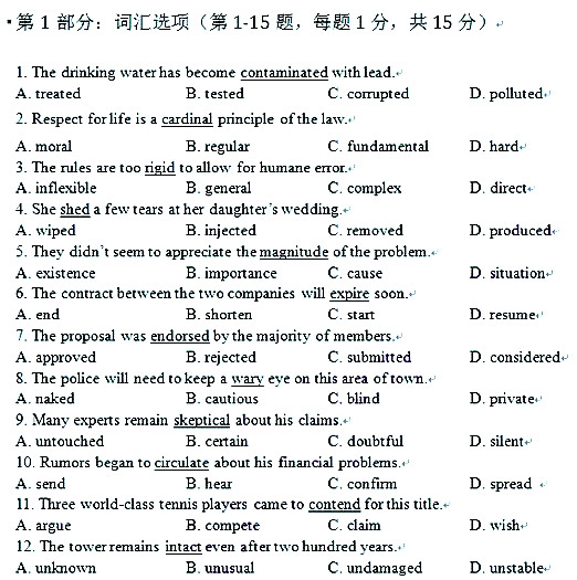- 職稱英語真題衛生類c級詞匯選項真題練習2017-04-27