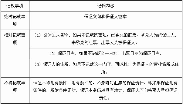 辦理保證手續(xù)時(shí),保證人必須在匯票或粘單上記載下列事項(xiàng):(1)表明“保證”的字樣;(2)保證人名稱和住所;(3)被保證人的名稱;(4)保證日期;(5)保證人簽章。