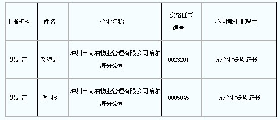 2013年黑龍江不符合物業管理師初始注冊條件名單(第二批)