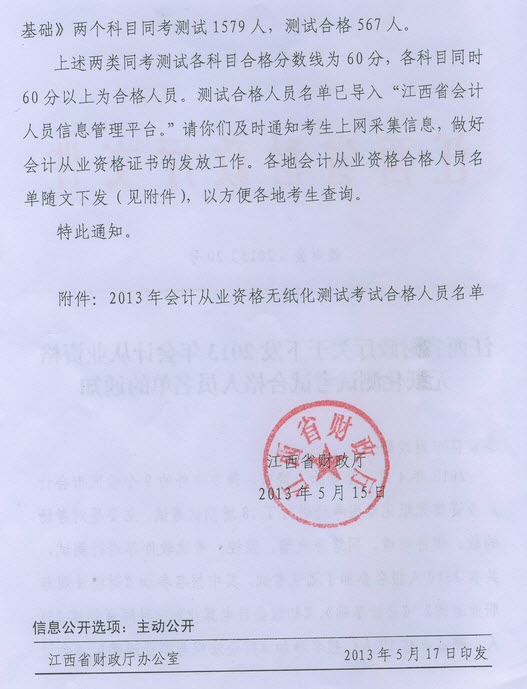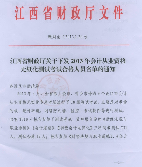 摘要 2013年贛州會計從業資格考試合格人員名單通知