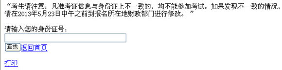2013年第二季度準考證打印時間:5月22日-5月31日