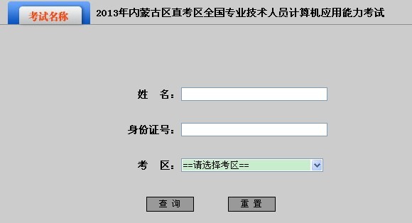 內蒙古2013年職稱計算機考試成績查詢入口