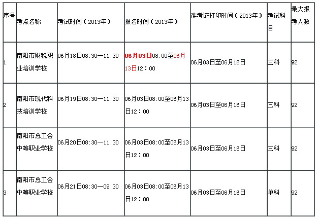 摘要 2013年6月份南陽會計從業考試報名時間6月3日起