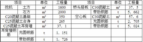 某二級公路路基寬15m,設計若干座矩形板小橋,其中有一座1孔標準跨徑8m的小橋,混凝土擴大基礎,輕型橋臺,臺高5.5m,上部結構設計為現澆鋼筋混凝土空心板,小橋河床有淺水0.5m,混凝土現場拌合,主要工程量見下表: