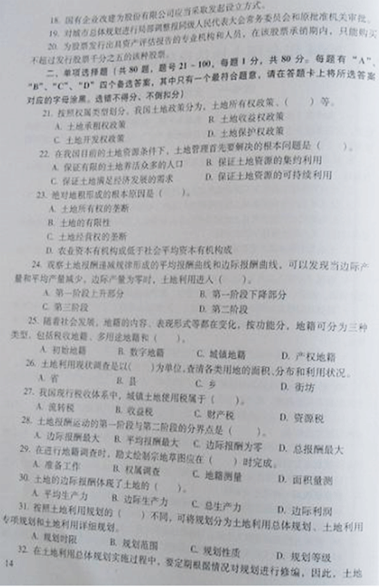- 環球首發:2014年土地估價師考試真題2014-09-15