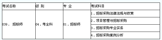 招標師職業(yè)水平考試設:《招標采購法律法規(guī)與政策》、《項目管理與招標采購》、《招標采購專業(yè)實務》和《招標采購案例分析》4個科目。