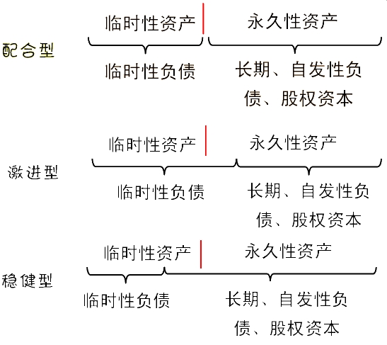 資金來源=短期來源(臨時性負債)+長期來源(長期負債、自發(fā)性負債、股權(quán)資本)