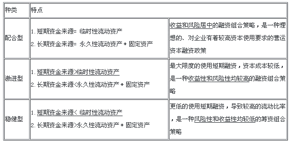 總結(jié):在三種策略中短期資金來源比例最大的是激進型組合策略,最小的是穩(wěn)健型組合策略。