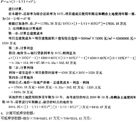 本題需要先用收益還原法估算建設完成后的房地產價值,再用剩余法估算土地使用權價格,