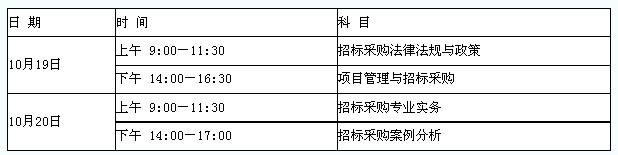 2013年度招標師職業(yè)水平考試定于10月19日至20日舉行,具體考試時間和考試科目如下: