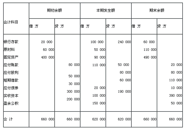 (2)期初余額欄,借方總計等于貸方總計;本期發生額欄,借方總計等于貸方總計;期末余額欄,借方總計等于貸方總計。