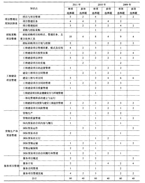 歷年招標(biāo)項(xiàng)目管理與招標(biāo)采購(gòu)考題分值統(tǒng)計(jì)
