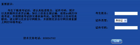 2013年北京會計從業資格補充考試準考證打印入口