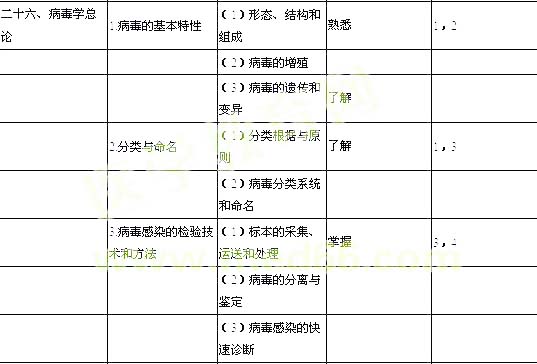 | 三十二、反轉(zhuǎn)錄病毒 | 1.人類免疫缺陷病毒 | (1)分類 | 掌握 | 1,3 |
