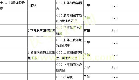 | 7.陰道脫落細(xì)胞檢查 | (1)正常脫落上皮細(xì)胞 | 掌握 | 2,3 | |