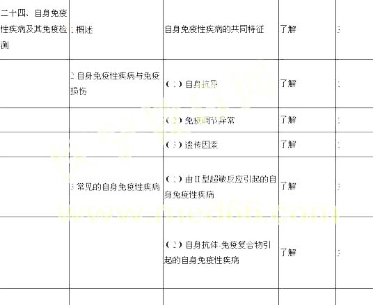 | 二十六、免疫缺陷性疾病及其免疫檢測 | 1.免疫缺陷病的分類和特點(diǎn) | (1)免疫缺陷病分類 | 掌握 | 3 |