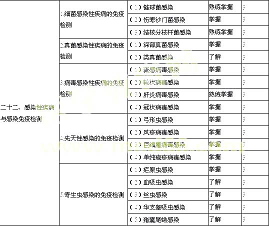 | 6.排斥反應(yīng)的免疫監(jiān)測 | (1)體液免疫與細胞免疫水平檢測的臨床意義 | 了解 | 4 | |