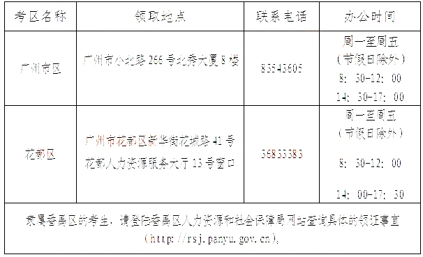 注:在廣東省人事考試局報名的考生,請與廣東省人事考試局聯系領取(地址:廣州市天河路13號潤粵大廈四樓)。