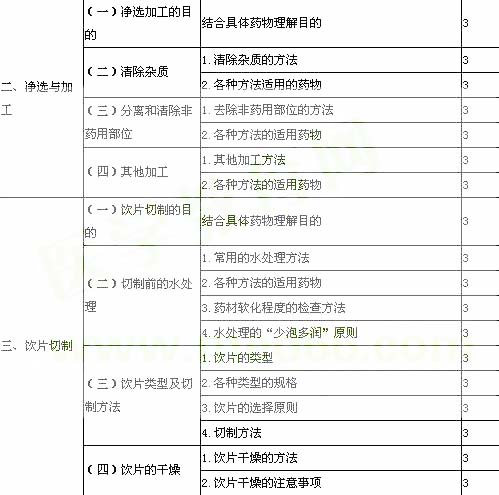 2013年初級中藥師專業技術資格考試大綱:第三部分 專業知識